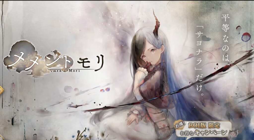 「メメントモリ」とは株式会社バンク・オブ・イノベーション(BOI)が開発・運営するスマホゲームアプリです。放置系RPGで、キャラクターが自動で戦闘を進める仕組みです。基本プレイ無料、累計200万ダウンロードを超えています。